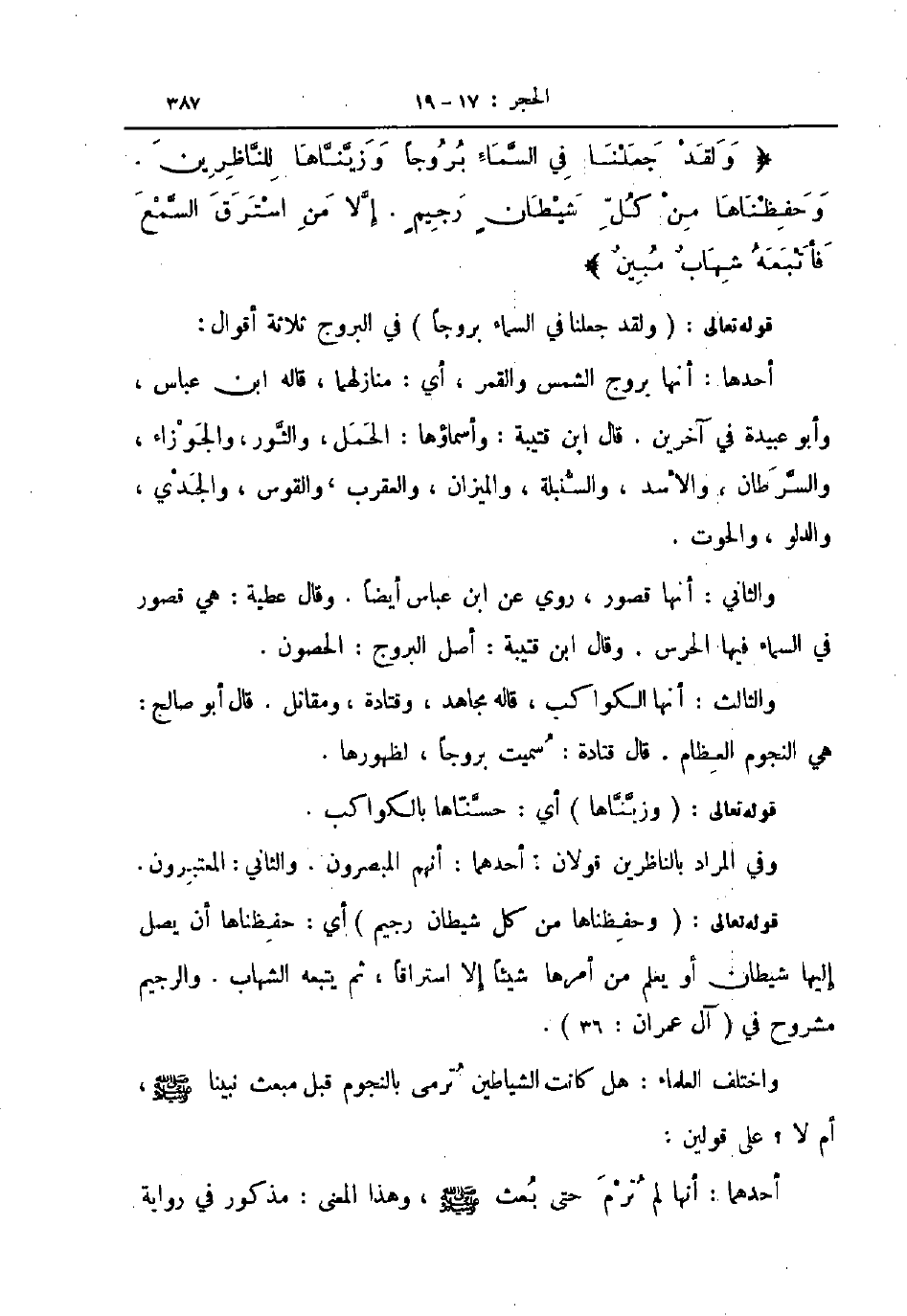 ولقد جعلنا في السماء بروجا وزيناها للناظرين وحفظناها من كل شيطان رجيم إلا من استرق السمع فأتبعه شهاب مبين