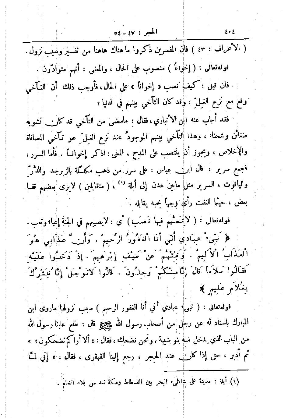 الأعراف 43 فإن المفسرين ذكروا ما هناك هاهنا من تفسير وسبب نزول