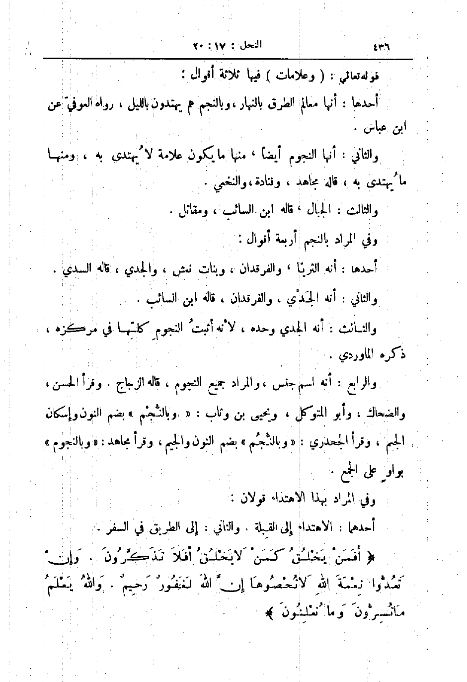 أحدهما الاهتداء إلى القبلة والثاني إلى الطريق في السفر أفمن يخلق كمن لا يخلق أفلا تذكرون وإن تعدوا نعمة الله لا تحصوها إن الله لغفور رحيم والله يعلم ما تسرون وما تعلنون