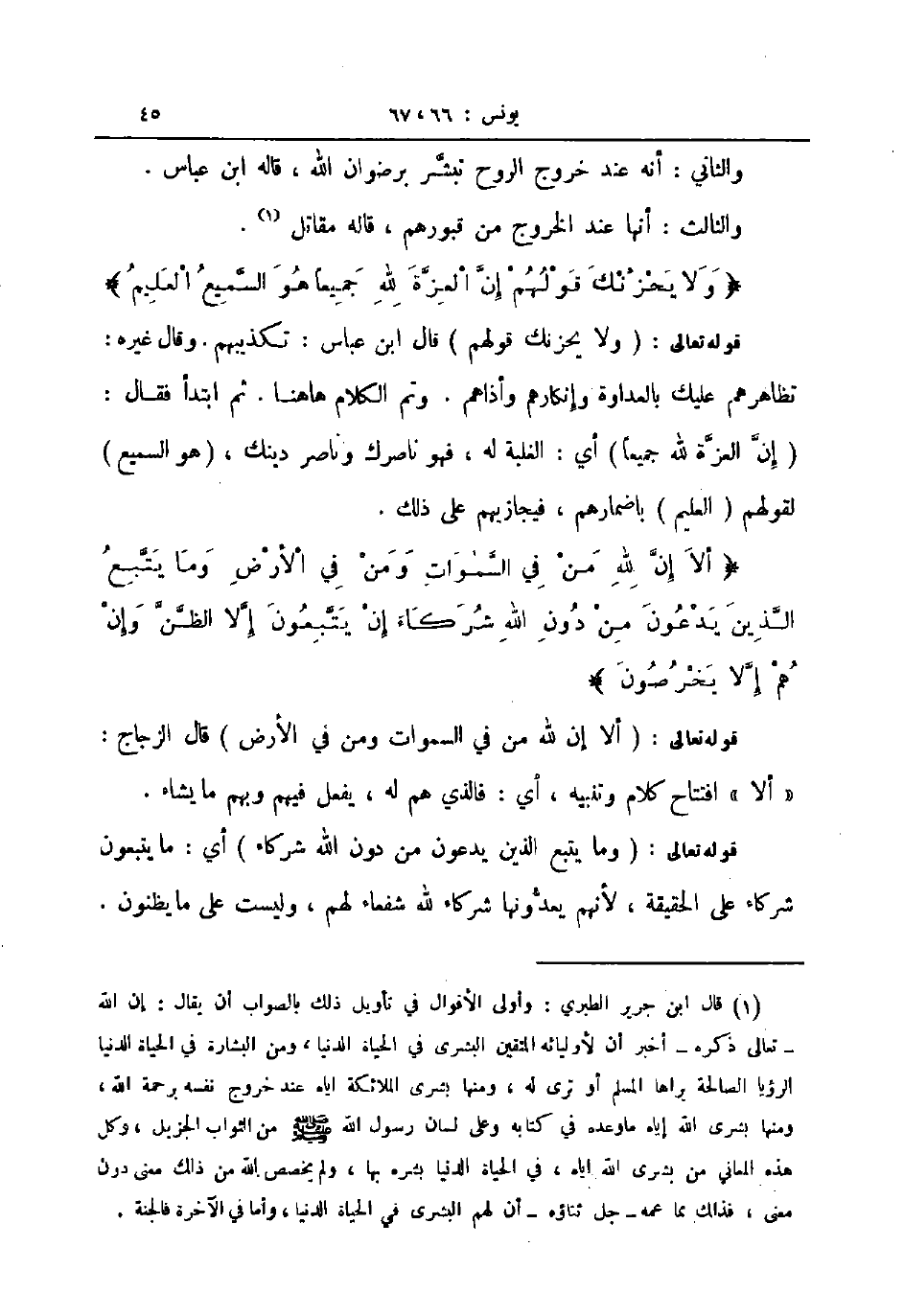 قوله تعالى ولا يحزنك قولهم قال ابن عباس تكذيبهم وقال غيره تظاهرهم عليك بالعداوة وإنكارهم وأذاهم وتم الكلام هاهنا ثم ابتدأ فقال إن العزة لله جميعا أي الغلبة له فهو ناصرك وناصر دينك هو السميع لقولهم العليم باضمارهم فيجازيهم على ذلك ألا إن لله من في السموات ومن في الأرض وما يتبع الذين يدعون من دون الله شركاء أن يتبعون إلا الظن وإن هم إلا يخرصون