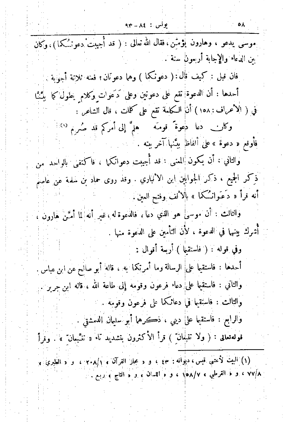 أحدها أن الدعوة تقع على دعوتين وعلى دعوات وكلام يطول كما بينا في الأعراف 158 أن الكلمة تقع على كلمات قال الشاعر ... وكان دعا دعوة قومه ... هلم إلى أمركم قد صرم ...
