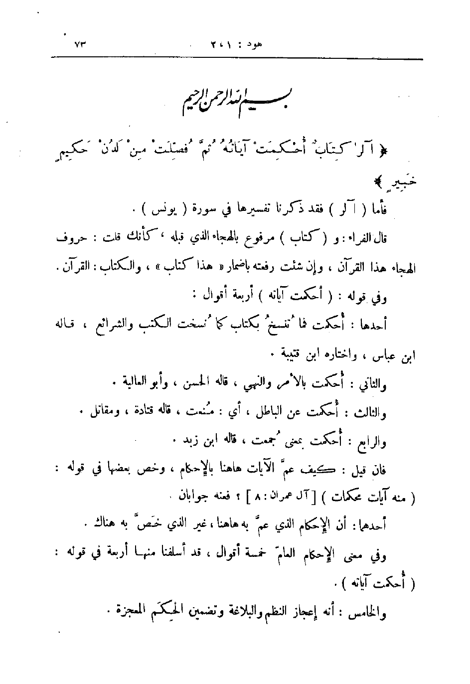 بسم الله الرحمن الرحيم آلر كتاب أحكمت آياته ثم فصلت من لدن حكيم خبير