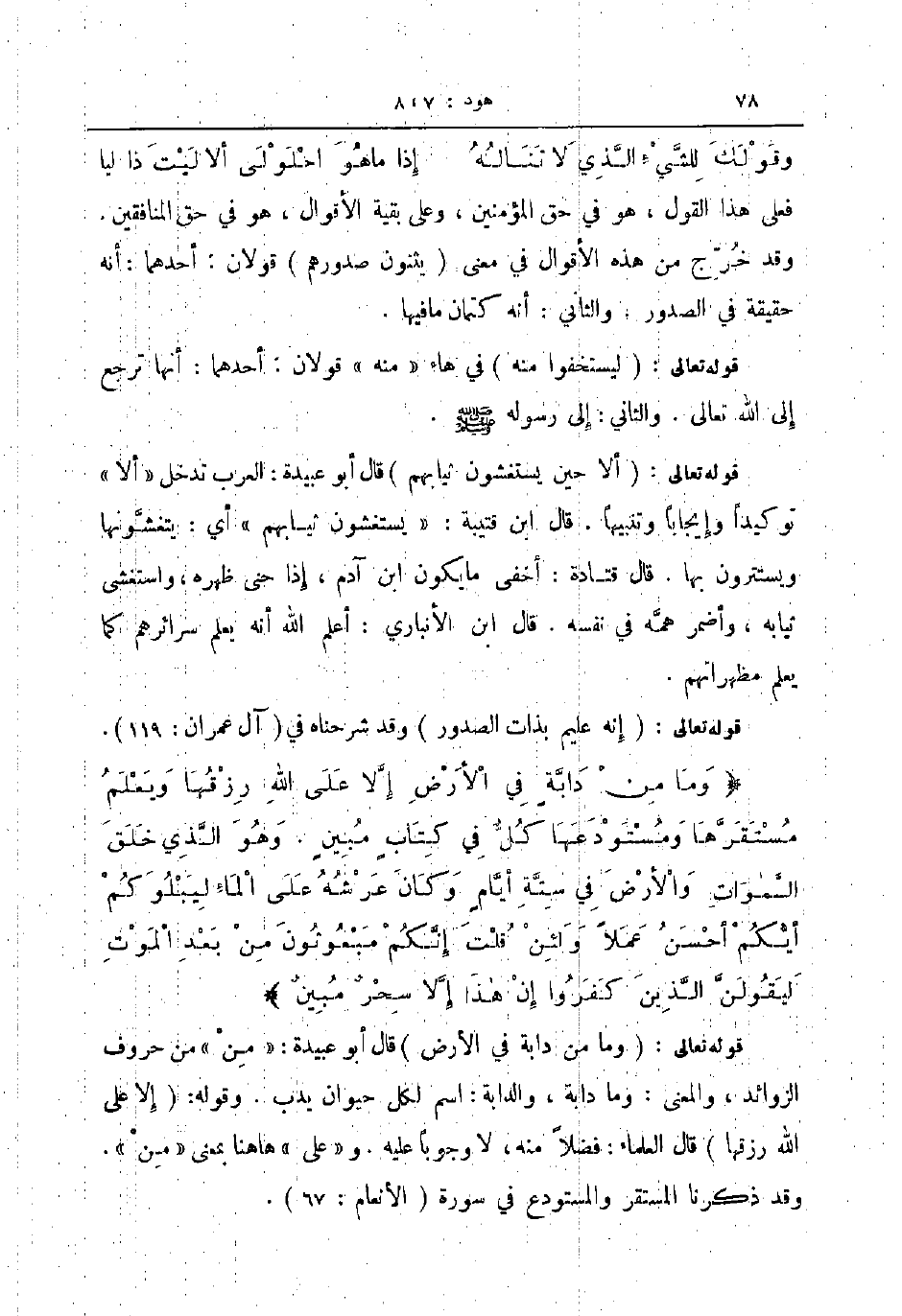 قوله تعالى إنه عليم بذات الصدور وقد شرحنا في آل عمران 119 وما من دابة في الأرض إلا على الله رزقها ويعلم مستقرها ومستودعها كل في كتاب مبين وهو الذي خلق السموات والأرض في ستة أيام وكان عرشه على الماء ليبلوكم أيكم أحسن عملا ولئن قلت إنكم مبعوثون من بعد الموت ليقولن الذين كفورا إن هذا إلا سحر مبين