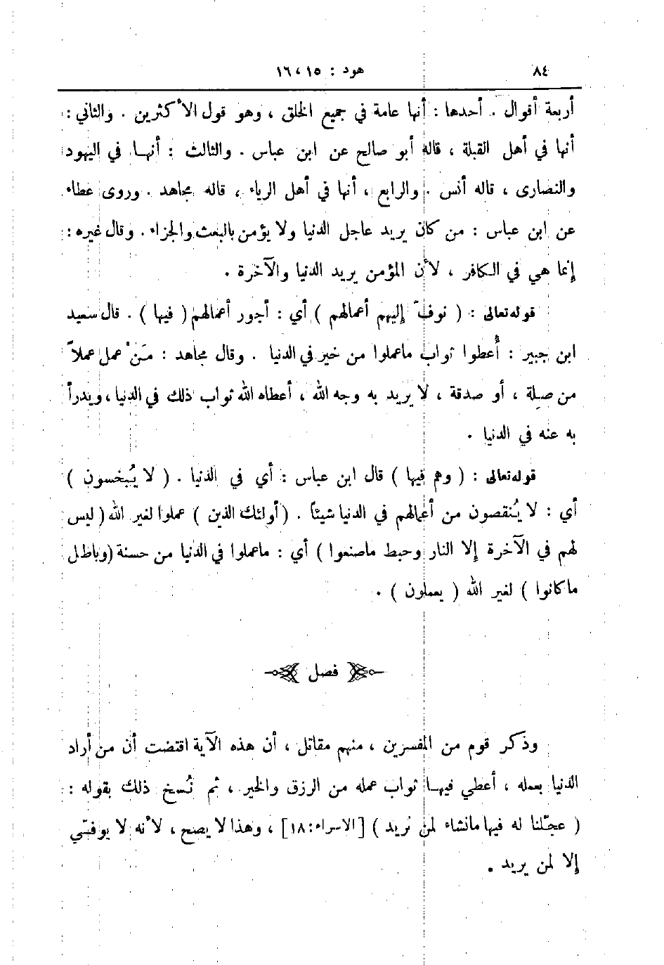 أربعة أقوال أحدها أنها عامة في جميع الخلق وهو قول الأكثرين والثاني أنها في أهل القبلة قاله أبو صالح عن ابن عباس والثالث أنها في اليهود والنصارى قاله أنس والرابع أنها في أهل الرياء قاله مجاهد وروى عطاء عن ابن عباس من كان يريد عاجل الدنيا ولا يؤمن بالبعث والجزاء وقال غيره إنما هي في الكافر لأن المؤمن يريد الدنيا والآخرة