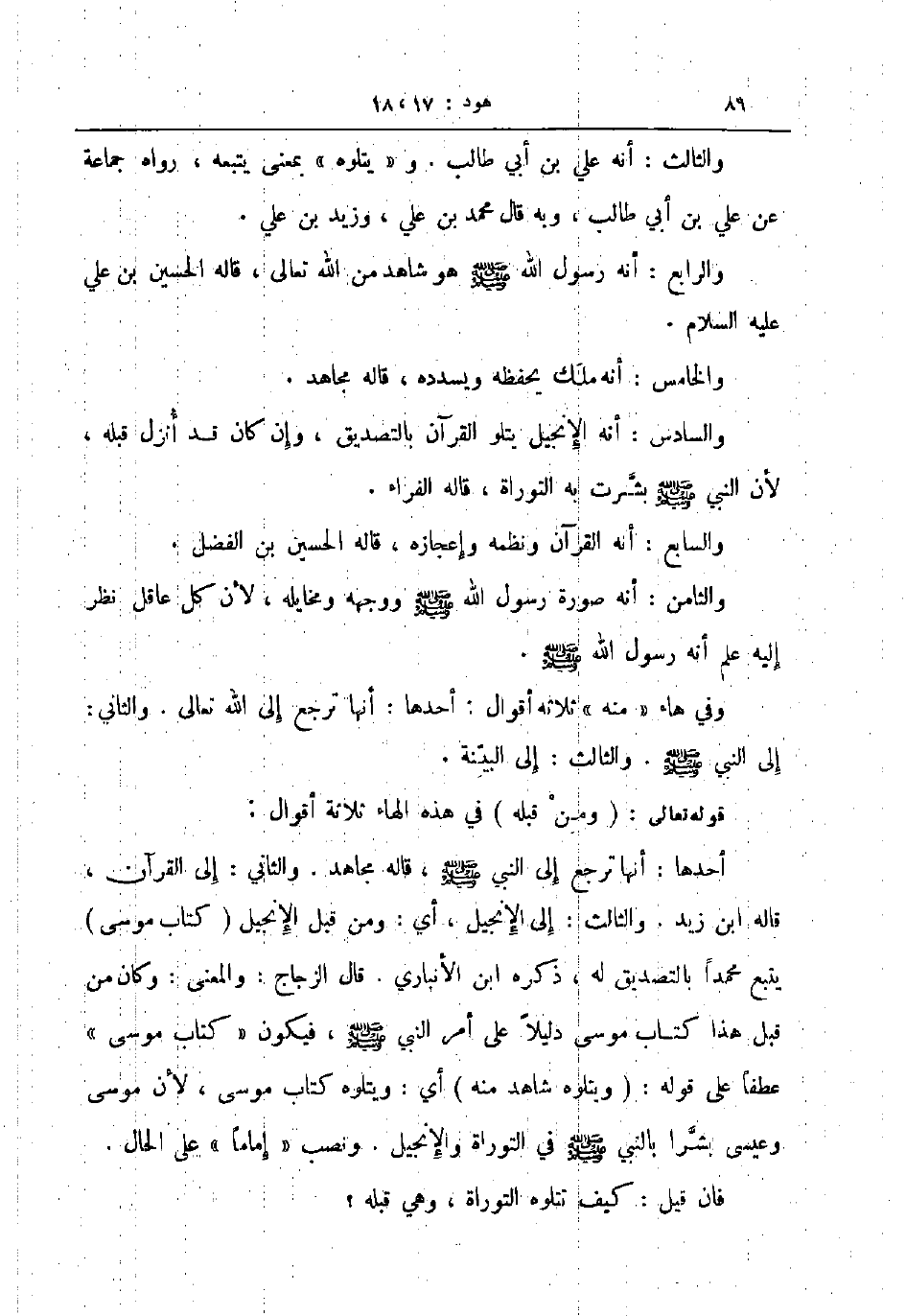 والثالث أنه علي بن أبي طالب و يتلوه بمعنى يتبعه رواه جماعة عن علي بن أبي طالب وبه قال محمد بن علي وزيد بن علي