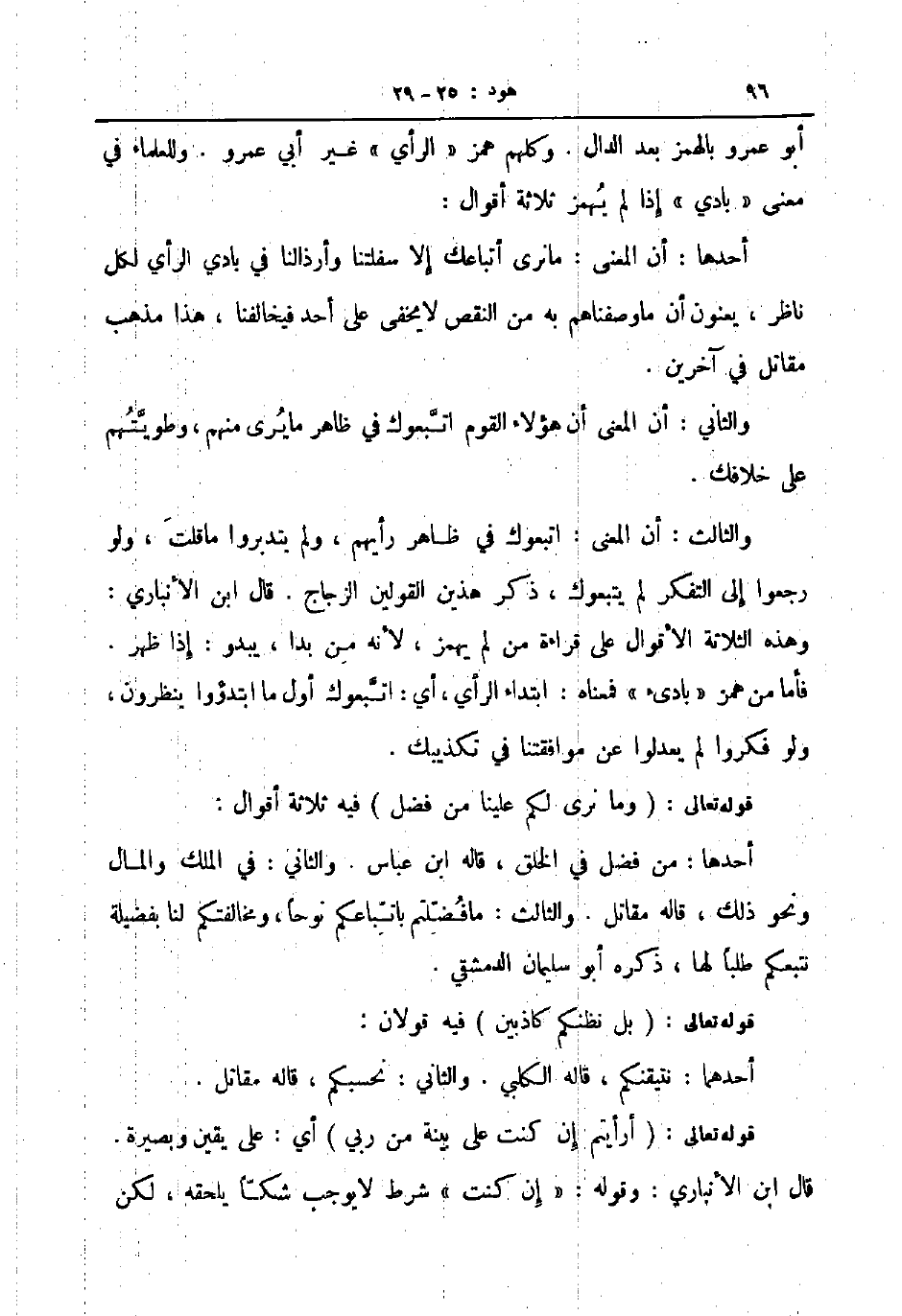 والثالث أن المعنى اتبعوك في ظاهر رأيهم ولم يتدبروا ما قلت ولو رجعوا إلى التفكر لم يتبعوك ذكر هذين القولين الزجاج قال ابن الأنباري وهذه الثلاثة الأقوال على قراءة من لم يهمز لأنه من بدا يبدو إذا ظهر فأما من همز بادئ فمعناه ابتداء الرأي أي اتبعوك أول ما ابتدؤوا ينظرون ولو فكروا لم يعدلوا عن موافقتنا في تكذيبك