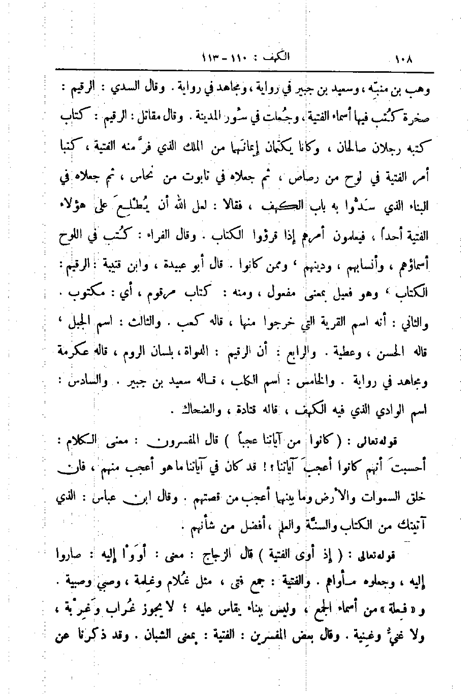 وهب بن منبه وسعيد بن جبير في رواية ومجاهد في رواية وقال السدي الرقيم صخرة كتب فيها اسماء الفتية وجعلت في سور المدينة وقال مقاتل الرقيم كتاب كتبه رجلان صالحان وكانا يكتمان إيمانهما من الملك الذي فر منه الفتية كتبا أمر الفتية في لوح من رصاص ثم جعلاه في تابوت من نحاس ثم جعلاه في البناء الذي سدوا به باب الكهف فقالا لعل الله أن يطلع على هؤلاء الفتية احدا فيعلمون أمرهم إذا قرؤوا الكتاب وقال الفراء كتب في اللوح اسماؤهم وانسابهم ودينهم وممن كانوا قال ابو عبيدة وابن قتيبة الرقيم الكتاب وهو فعيل بمعنى مفعول ومنه كتاب مرقوم أي مكتوب والثاني أنه اسم القرية ألتي خرجوا منها قاله كعب والثالث اسم الجبل قاله الحسن وعطية والرابع ان الرقيم الدواة بلسان الروم قاله عكرمة ومجاهد في رواية والخامس اسم الكلب قاله سعيد بن جبير والسادس اسم الوادي الذي فيه الكهف قاله قتادة والضحاك