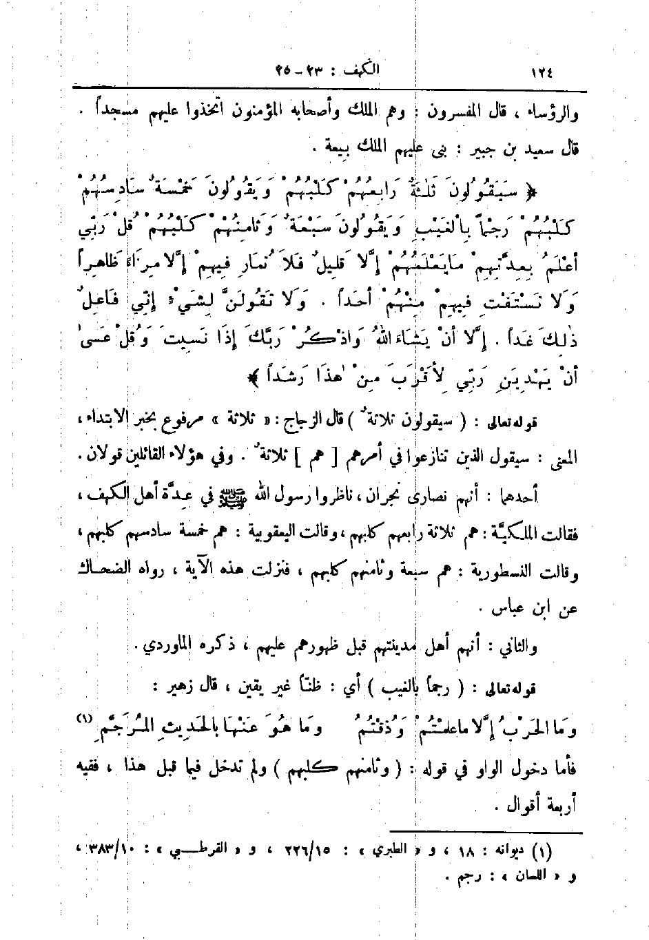 سيقولون ثلثة رابعهم كلبهم ويقولون خمسة سادسهم كلبهم رجما بالغيب ويقولون سبعة وثامنهم كلبهم قل ربي أعلم بعدتهم ما يعلمهم إلا قليل فلا تمار فيهم إلا مراء ظاهرا ولا تستفت فيهم منهم أحدا ولا تقولون لشيء إني فاعل ذلك غدا إلا أن يشاء الله واذكر ربك إذا نسيت وقل عسى أن يهدين ربي لأقرب من هذا رشدا