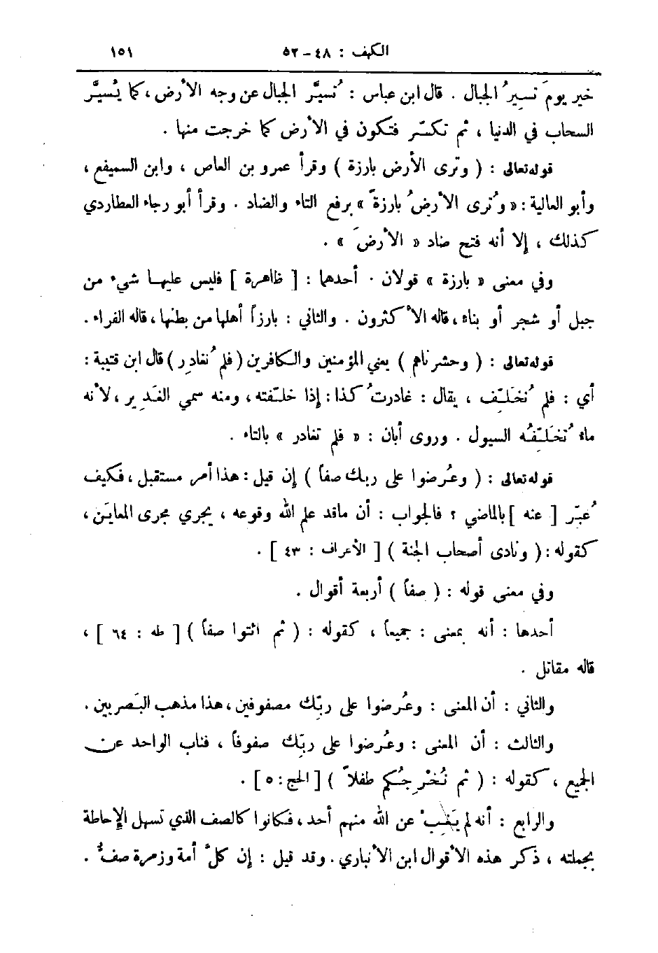 وفي معنى بارزة قولان أحدهما ظاهرة فليس عليها شيء من جبل او شجر او بناء قاله الأكثرون والثاني بارزا أهلها من بطنها قاله الفراء