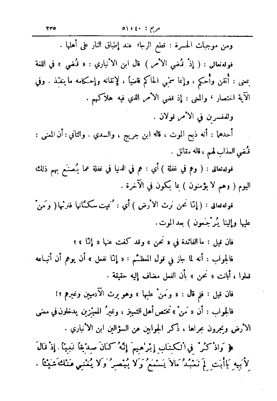 قوله تعالى إنا نحن نرث الارض أي نميت سكانها فنرثها ومن عليها وإلينا يرجعون بعد الموت