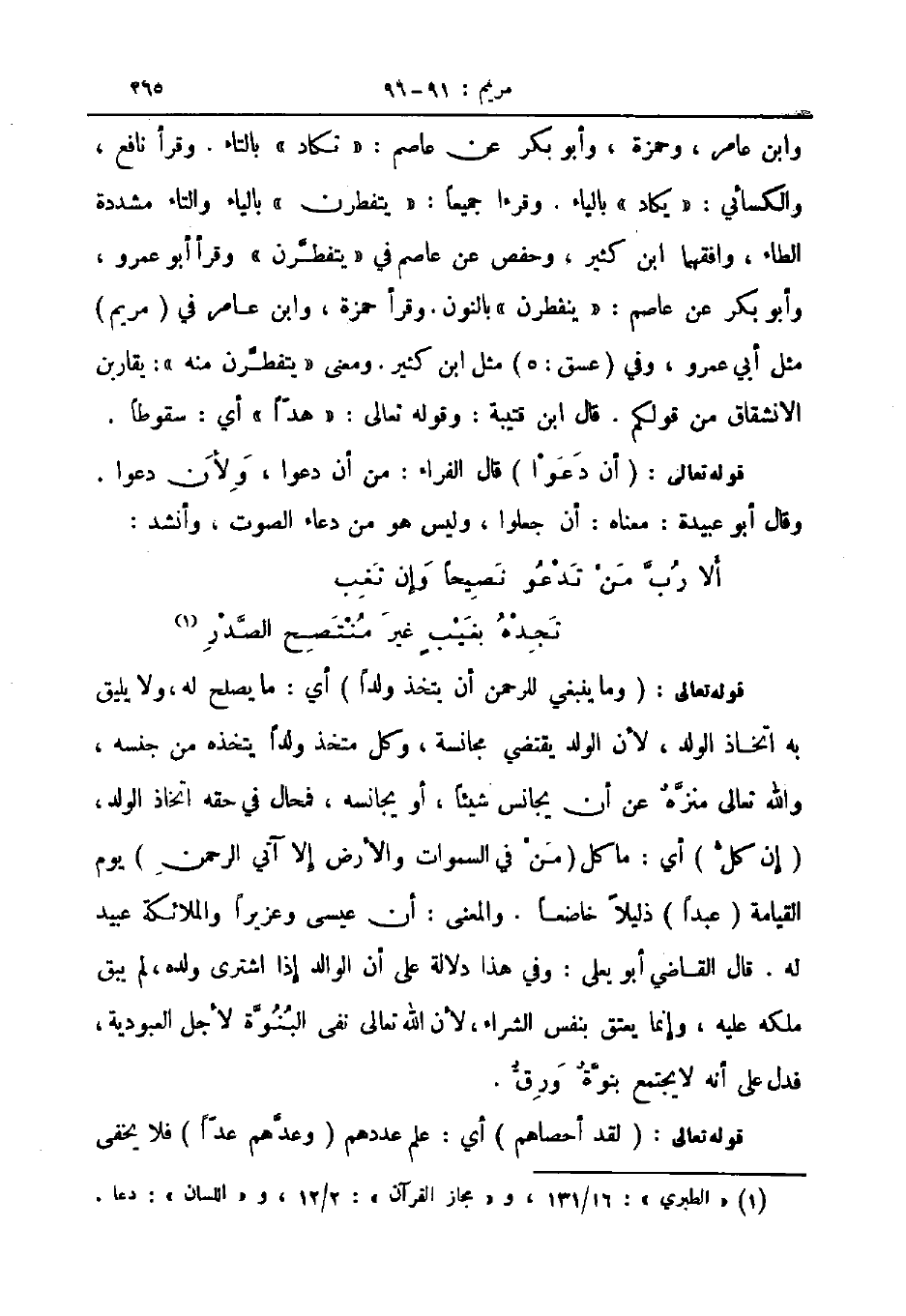 قوله تعالى وما ينبغي للرحمن أن يتخذ ولدا أي ما يصلح له ولا يليق به اتخاذ الولد لأن الولد يقتضي مجانسة وكل متخذ ولدا يتخذه من جنسه والله تعالى منزه عن أن يجانس شيئا أو يجانسه فمحال في حقه اتخاذ الولد إن كل أي ما كل من في السموات والأرض إلا آتي الرحمن يوم القيامة عبدا ذليلا خاضعا والمعنى أن عيسى وعزيرا والملائكة عبيد له قال القاضي ابو يعلى وفي هذا دلالة على أن الوالد إذا اشترى ولده لم يبق ملكه عليه وإنما يعتق بنفس الشراء لأن الله تعالى نفى البنوة لأجل العبودية فدل على أنه لا يجتمع بنوة ورق
