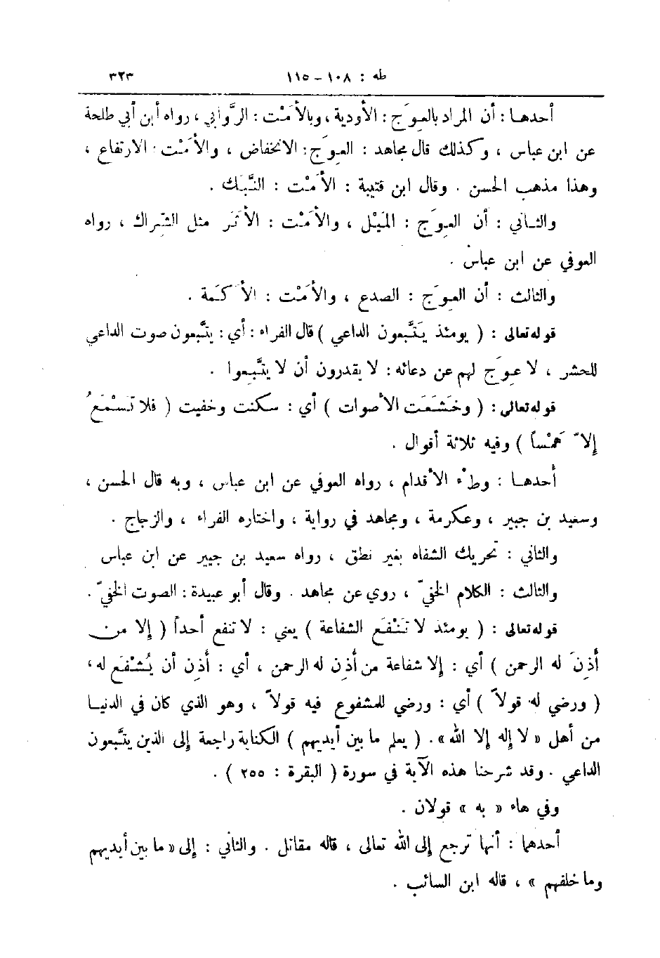 أحدها ان المراد بالعوج الأودية وبالأمت الروابي رواه ابن أبي طلحة عن ابن عباس وكذلك قال مجاهد العوج الانخفاض والأمت الارتفاع وهذا مذهب الحسن وقال ابن قتيبة الأمت النبك