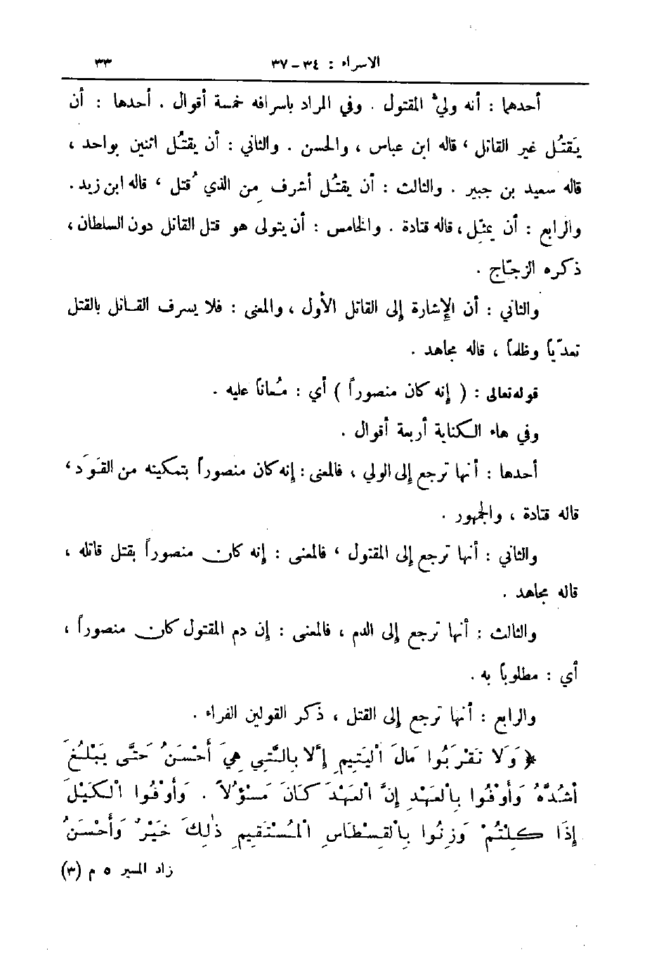 احدهما انه ولي المقتول وفي المراد باسرافه خمسة اقوال احدها ان يقتل غير القاتل قاله بن عباس والحسن والثاني أن يقتل اثنين بواحد قاله سعيد بن بن جبير والثالث ان يقتل اشرف من الذي قتل قاله ابن زيد والرابع ان يمثل قاله قتادة والخامس ان يتولى هو قتل القاتل دون السلطان ذكره الزجاج