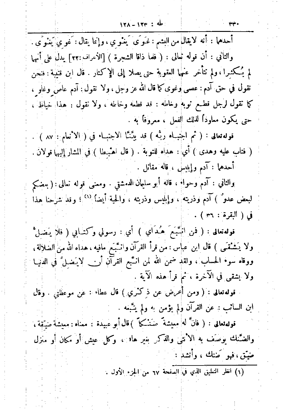 والثاني أن قوله تعالى فلما ذاقا الشجرة الأعراف 22 يدل على أنهما لم يكثرا ولم تتأخر عنهما العقوبة حتى يصلا الى الإكثار قال ابن قتيبة فنحن نقول في حق آدم عصى وغوى كما قال الله عز و جل ولا نقول آدم عاص وغاو كما تقول لرجل قطع ثوبه وخاطه قد قطعه وخاطه ولا تقول هذا خياط حتى يكون معاودا لذلك الفعل معروفا به