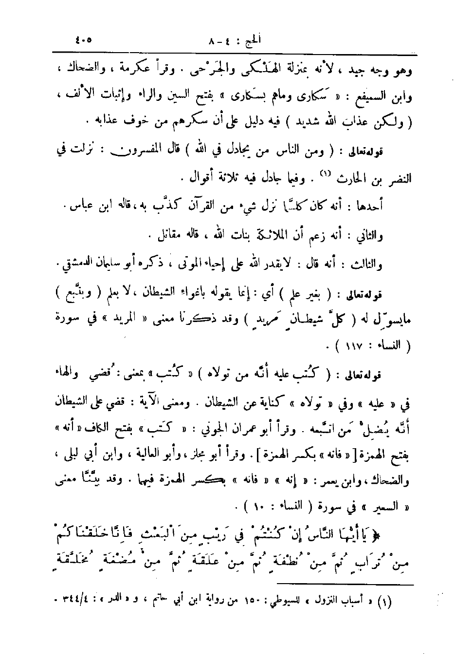 قوله تعالى ومن الناس من يجادل في الله قال المفسرون نزلت في النضر بن الحارث وفيما جادل فيه ثلاثة أقوال