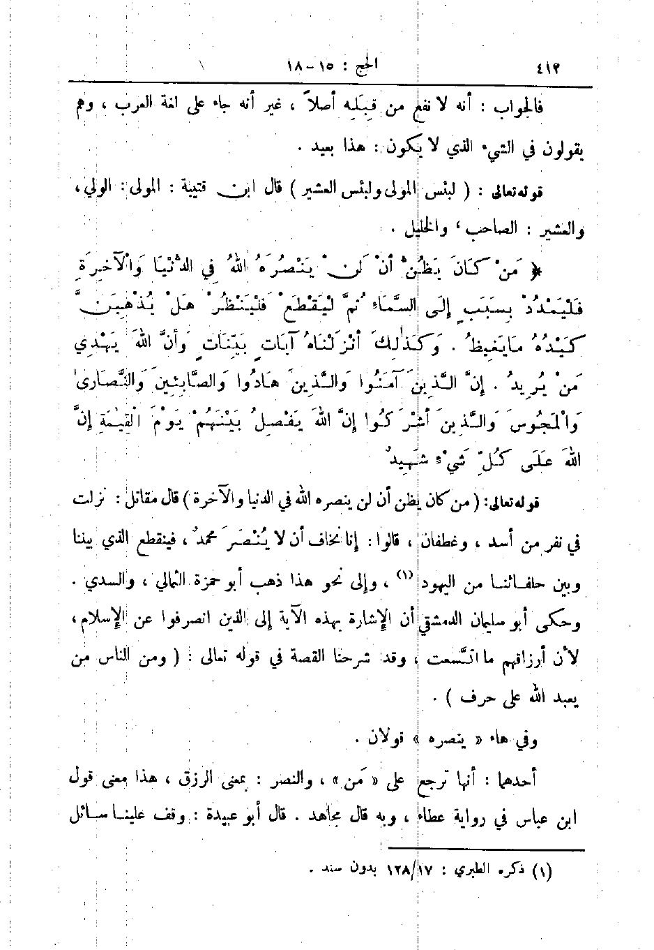 ومن كان يظن أن لن ينصره الله في الدنيا والآخرة فليمدد بسبب الى السماء ثم ليقطع فلينظر هل يذهبن كيده ما يغيظ وكذلك أنزلناه آيات بينات وأن الله يهدي من يريد إن الذين آمنوا والذين هادوا والصابئين والنصارى والمجوس والذين اشركوا إن الله يفصل بينهم يوم القيامة إن الله عل كل شيء شهيد