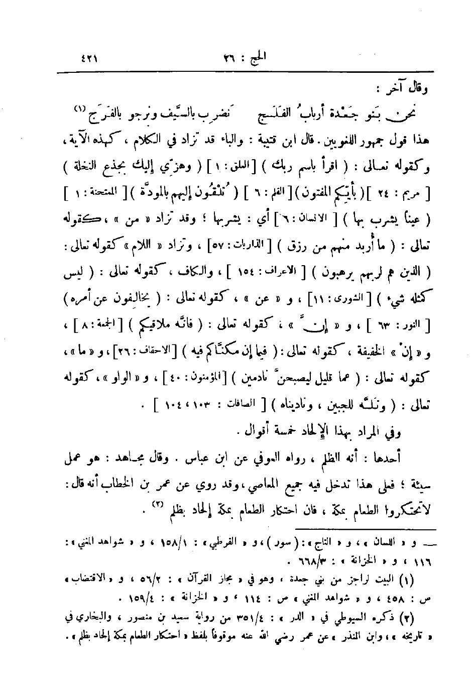 وفي المراد بهذا الإلحاد خمسة أقوال