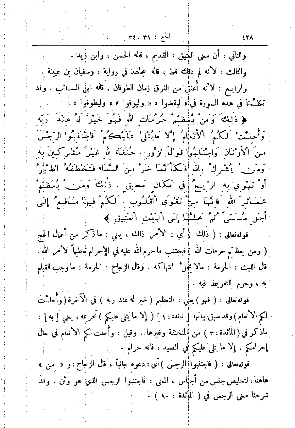 ذلك ومن يعظم حرمات الله فهو خير له عند ربه وأحلت لكم الأنعام إلا ما يتلى عليكم فاجتنبوا الرجس من الأوثان واجتنبوا قول الزور حنفاء لله غير مشركين به ومن يشرك بالله فكأنما خر من السماء فتخطفه الطير او تهوي به الريح في مكان سحيق ذلك ومن يعظم أو تهوي به الريح في مكان سحيق ذلك ومن يعظم شعائر الله فانها من تقوى القلوب لكم فيها منافع الى أجل مسمى ثم محلها الى البيت العتيق