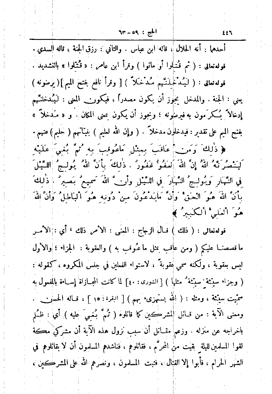 ذلك ومن عاقب بمثل ما عوقب به ثم بغي عليه لينصرنه الله إن الله لعفو غفور ذلك بأن الله يولج الليل في النهار ويولج النهار في الليل وأن الله سميع بصير ذلك بأن الله هو الحق وأن ما يدعون من دونه هو الباطل وأن الله هو العلي الكبير