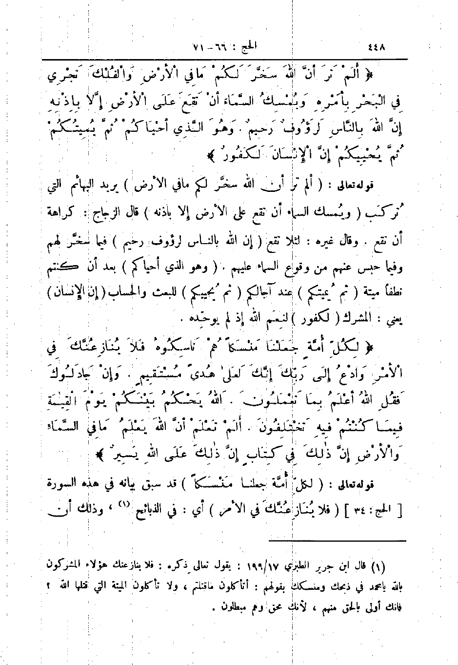 قوله تعالى لكل أمة جعلنا منسكا قد سبق بيانه في هذه السورة الحج 34 فلا ينازعنك في الأمر أي في الذبائح وذلك ان