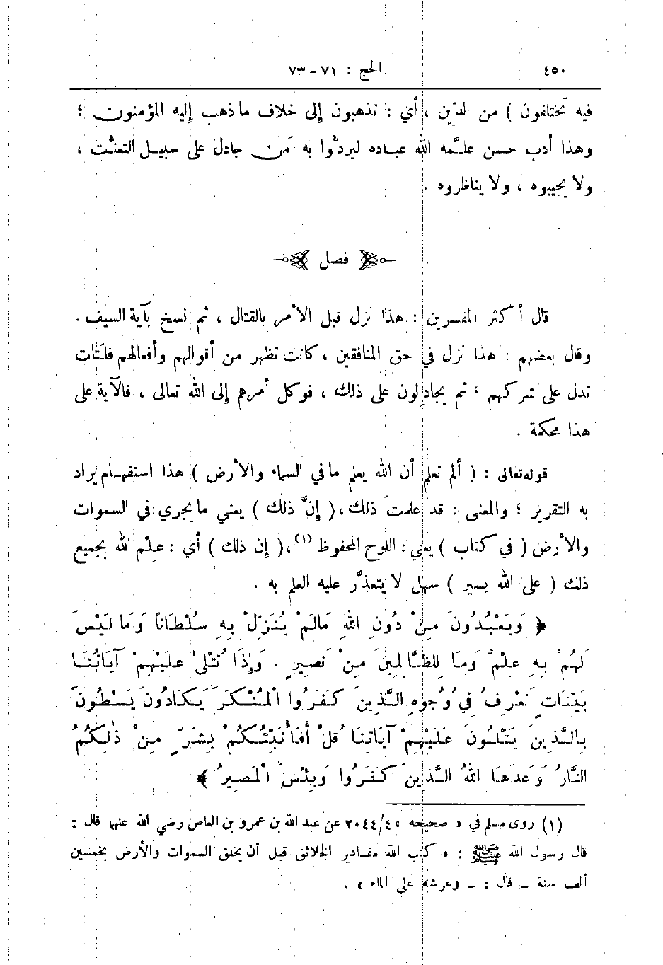 ويعبدون من دون الله مالم ينزل به سلطانا وما ليس لهم به علم وما للظالمين من نصير وإذا تتلى عليهم آياتنا بينات تعرف في وجوه الذين كفروا المنكر يكادون يسطون بالذين يتلون عليهم آياتنا قل أفأنبئكم بشر من ذلكم ذلك النار وعدها الله الذين كفروا وبئس المصير