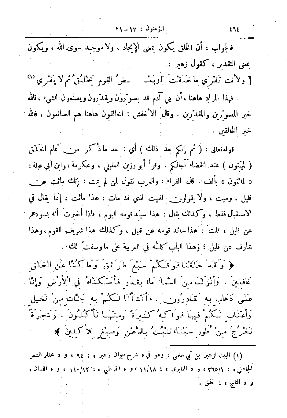 ولقد خلقنا فوقكم سبع طرائق وما كنا عن الخلق غافلين وانزلنا من السماء ماء بقدر فأسكناه في الأرض وإنا على ذهاب به لقادرون فأنشأنا لكم به جنات من نخيل وأعناب لكم فيها فواكه كثيرة ومنها تأكلون وشجرة تخرج من طور سيناء تنبت بالدهن وصبغ للاكلين
