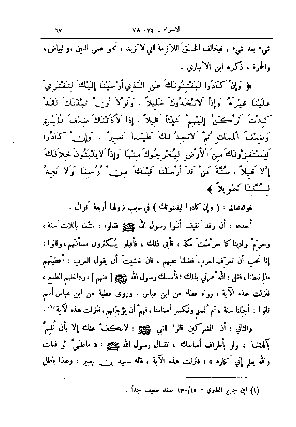 قوله تعالى وان كادوا ليفتنونك في سبب نزولها أربعة أقوال