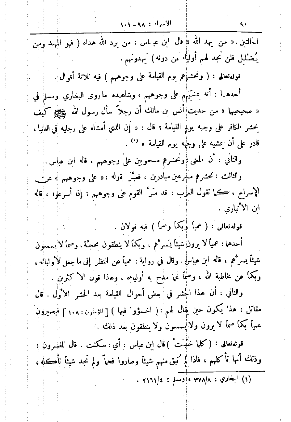 قوله تعالى ونحشرهم يوم القيامة على وجوههم فيه ثلاثة أقوال
