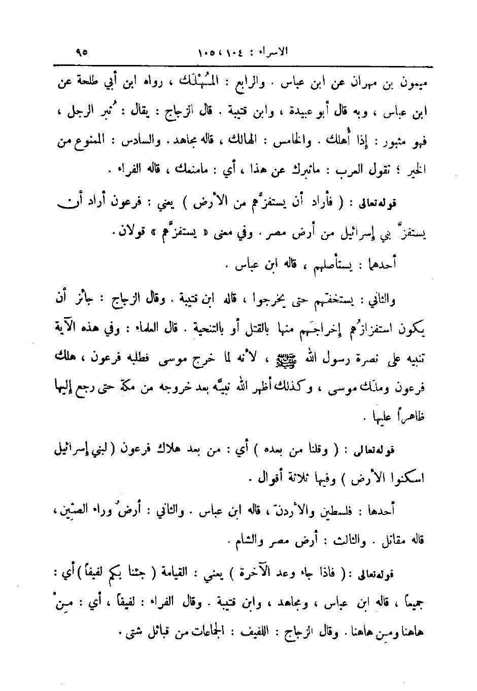 والثاني يستخفهم حتى يخرجوا قاله ابن قتيبة وقال الزجاج جائز أن يكون استفزازهم اخراجهم منها بالقتل أو بالتنحية قال العلماء وفي هذه الآية تنبيه على نصرة رسول الله صلى الله عليه و سلم لأنه لما خرج موسى فطلبه فرعون هلك فرعون وملك موسى وكذلك أظهر الله نبيه بعد خروجه من مكة حتى رجع اليها ظاهرا عليها