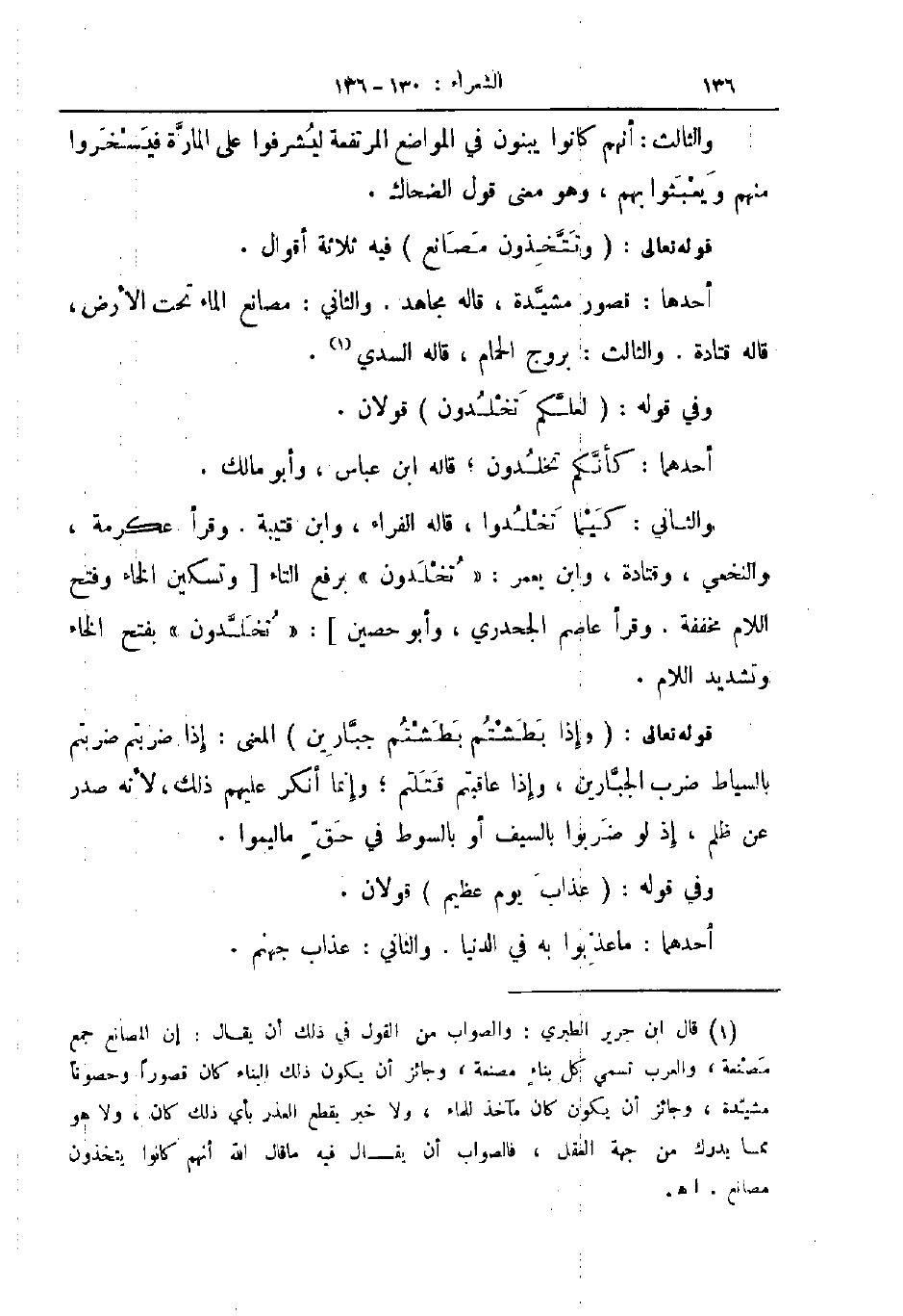 قوله تعالى وتتخذون مصانع فيه ثلاثة أقوال