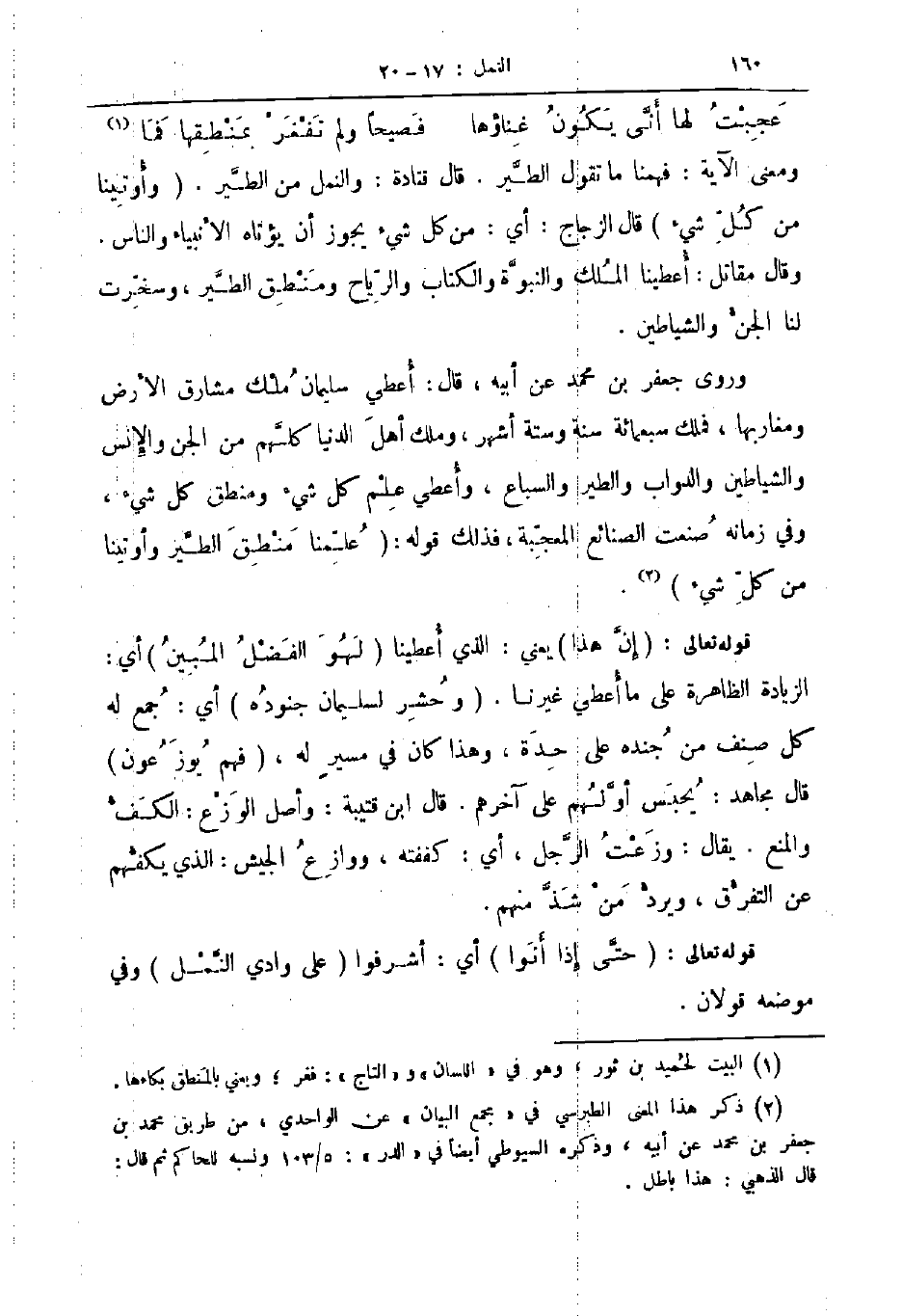ومعنى الآية فهمنا ما تقول الطير قال قتادة والنمل من الطير وأوتينا من كل شئ قال الزجاج أي من كل شئ يجوز ان يؤتاه الأنبياء والناس وقال مقاتل أعطينا الملك والنبوة والكتاب والرياح ومنطق الطير وسخرت لنا الجن والشياطين