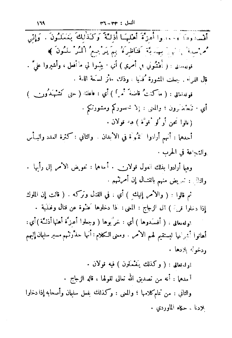 ثم قالوا والأمر إليك أي في القتال وتركه قالت إن الملوك إذا دخلوا قرية قال الزجاج المعنى إذا دخلوها عنوة عن قتال وغلبة