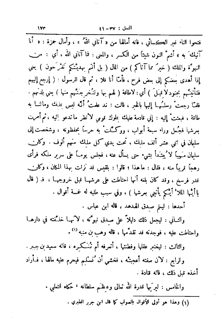 فتحوا التاء غير الكسائي فانه أمالها من آتاني الله وأمال حمزة أنا آتيك به أشم النون شيئا من الكسر والمعنى فما آتاني الله أي من النبوة والملك خير مما آتاكم من المال بل أنتم بهديتكم تفرحون يعني إذا أهدى بعضكم إلى بعض فرح فأما أنا فلا ثم قال للرسول إرجع إليهم فلنأتينهم بجنود لا قبل أي لا طاقة لهم بها ولنخرجنهم منها يعني بلدتهم فلما رجعت رسلها إليها بالخبر قالت قد علمت أنه ليس بملك وما لنا به طاقة فبعثت إليه إني قادمة عليك بملوك قومي لأنظر ما تدعو إليه ثم أمرت بعرشها فجعل وراء سبعة أبواب ووكلت به حرسا يحفظونه وشخصت إلى سليمان في اثني عشر ألف ملك تحت يدي كل ملك منهم ألوف وكان سليمان مهيبا لا يبتدأ بشئ حتى يسأل عنه فجلس يوما على سرير ملكه فرأى رهجا قريبا منه فقال ما هذا قالوا بلقيس قد نزلت بهذا المكان وكان قدر فرسخ وقد كان بلغه أنها احتاطت على عرشها قبل خروجها ف قال يا أيها الملأ أيكم يأتيني بعرشها وفي سبب طلبه له خمسة أقوال