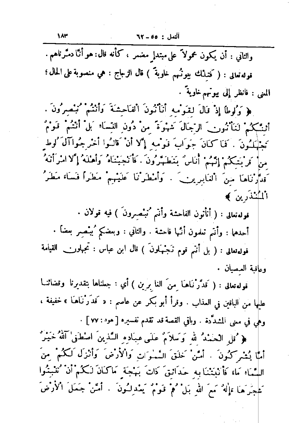 قل الحمد لله وسلام على عباده الذين اصطفى الله خير أما يشركون أمن خلق السماوات والأرض وأنزل لكم من السماء ماء فأنبتنا به حدائق ذات بهجة ما كان لكم أن تنبتوا شجرها ءإله مع الله بل هم قوم يعدلون أمن جعل الأرض