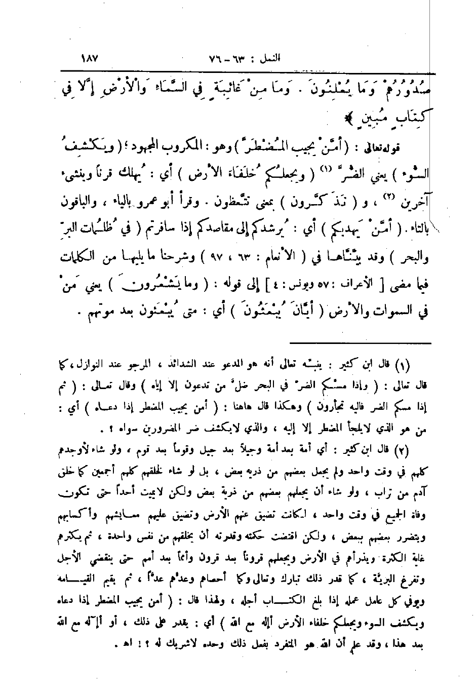 قوله تعالى أمن يجيب المضطر وهو المكروب المجهود ويكشف السوء يعني الضر ويجعلكم خلفاء الارض أي يهلك قرنا وينشئ آخرين وتذكرون بمعنى تتعظون وقرأ أبو عمرو بالياء والباقون بالتاء أمن يهديكم أي يرشدكم إلى مقاصدكم إذا سافرتم في ظلمات البر والبحر وقد بيناها في الأنعام وشرحنا ما يليها من الكلمات فيما مضى الأعراف ويونس إلى قوله وما يشعرون يعني من في السماوات والأرض أيان يبعثون أي متى يبعثون بعد موتهم