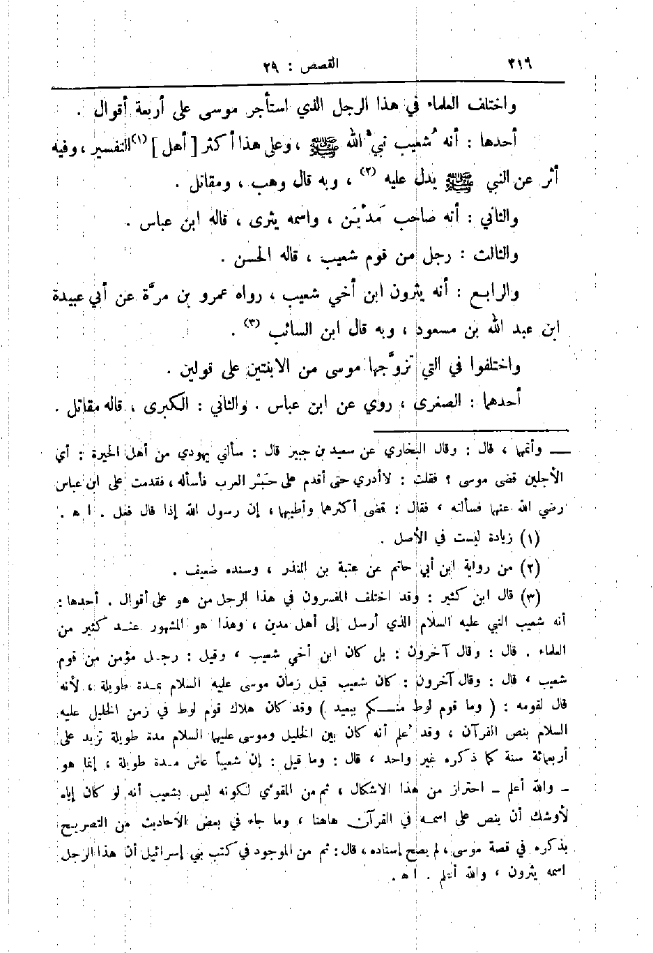 واختلفوا في التي تزوجها موسى من الإبنتين على قولين