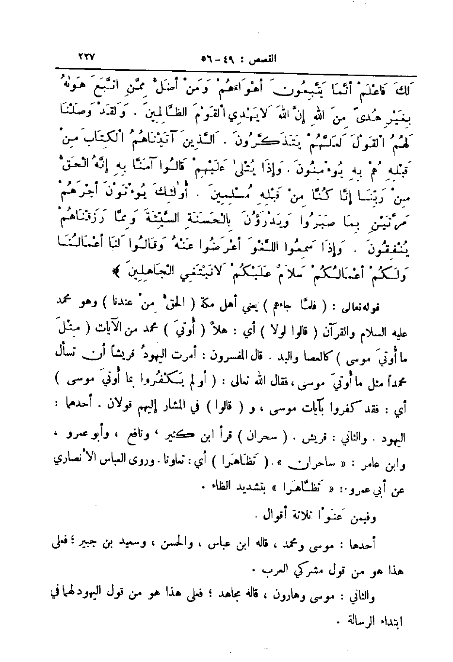 قوله تعالى فلما جاءهم يعني أهل مكة الحق من عندنا وهو محمد عليه السلام والقرآن قالوا لولا أي هلا أوتي محمد من الآيات مثل ما اوتي موسى كالعصا واليد قال المفسرون أمرت اليهود قريشا أن تسأل محمدا مثل ما أوتي موسى فقال الله تعالى أو لم يكفروا بما أوتي موسى أي فقد كفروا بآيات موسى وقالوا في المشار إليهم قولان أحدهما اليهود والثاني قريش سحران قرأ ابن كثير ونافع وأبو عمرو وابن عامر ساحران تظاهرا أي تعاونا وروى العباس الانصاري عن أبي عمرو تظاهرا بتشديد الظاء
