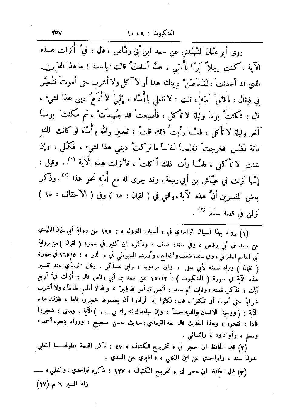 روى أبو عثمان النهدي عن سعد ابن أبي وقاص قال في أنزلت هذه الآية كنت رجلا برا بأمي فلما أسلمت قالت يا سعد ما هذا الدين الذي قد أحدثت لتدعن دينك هذا أولا آكل ولا أشرب حتى أموت فتعير بي فيقال يا قاتل أمه قلت لا تفعلي يا أماه إني لا أدع ديني هذا لشئ قال فمكثت يوما وليلة لا تأكل فأصبحت قد جهدت ثم مكثت يوما آخر وليلة لا تأكل فلما رأيت ذلك قلت تعلمين والله ياأماه لو كانت لك مائة نفس فخرجت نفسا نفسا ما تركت ديني هذا لشئ فكلي وإن شئت لا تأكلي فلما رأت ذلك أكلت فأنزلت هذه الآية وقيل أنها نزلت في عياش بن ابي ربيعة وقد جرى له مع أمه نحو هذا وذكر بعض المفسرين أن هذه الآية والتي في لقمان وفي الأحقاف نزلن في قصة سعد