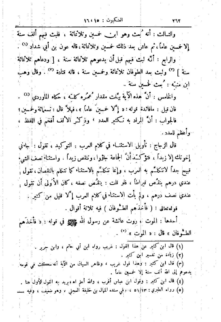 قال الزجاج تأويل الاستثناء في كلام العرب التوكيد تقول جاءني إخوتك إلا زيدا فتؤكد أن الجماعة جاؤوا وتنقص زيدا واستثناء نصف الشئ قبيح جدا لا تتكلم به العرب وإنما تتكلم بالاستثناء كما تتكلم بالنقصان تقول عندي درهم ينقص قيراطا فلو قلت ينقص نصفه كان الاولى ان تقول عندي نصف درهم ولم يأت الاستثناء في كلام العرب إلا قليل من كثير