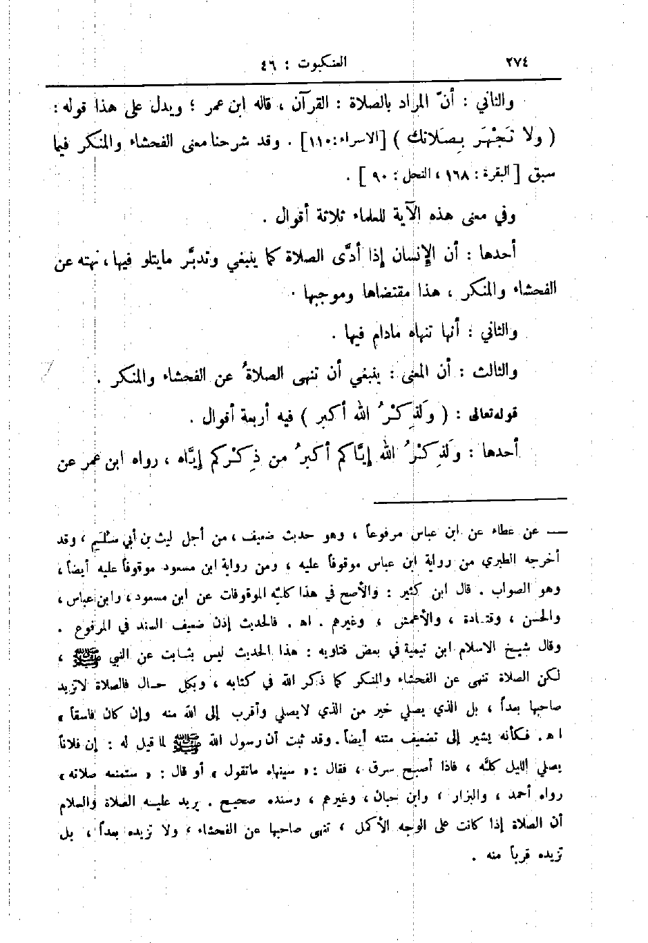 والثاني أن المراد بالصلاة القرآن قاله ابن عمر ويدل على هذا قوله ولا تجهر بصلاتك الاسراء وقد شرحنا معنى الفحشاء والمنكر فيما سبق البقرة النحل