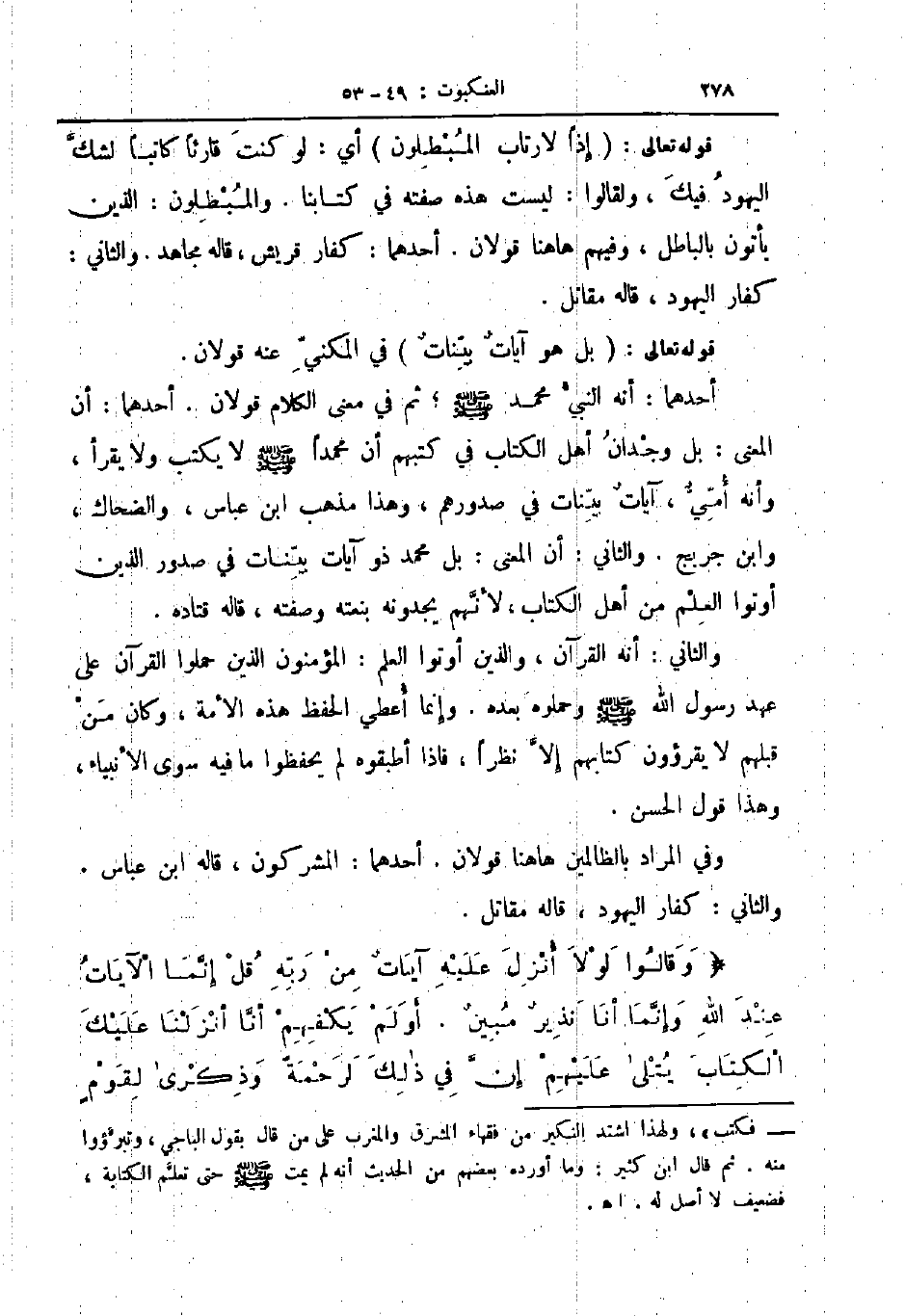 والثاني أنه القرآن والذين أوتوا العلم المؤمنون الذين حملوا القرآن على عهد رسول الله ص وحملوه بعده وإنما أعطي الحفظ هذه الأمة وكان من قبلهم لا يقرؤون كتابهم إلا نظرا فاذا أطبقوه لم يحفظوا ما فيه سوى الأنبياء وهذا قول الحسن