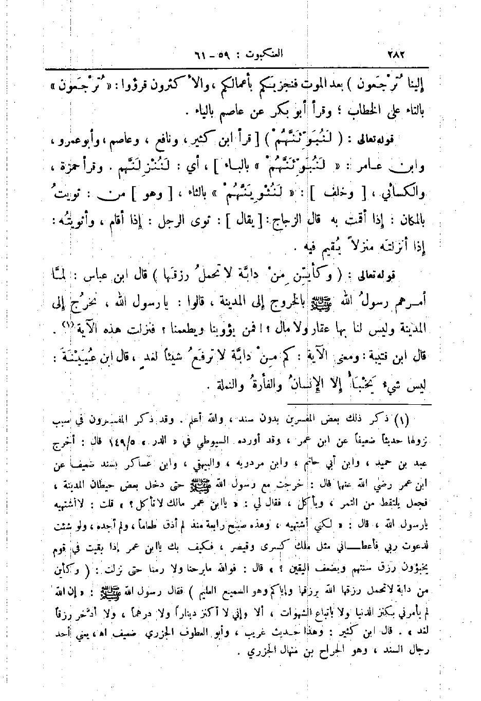قوله تعالى وكأين من دابة لا تحمل رزقها قال ابن عباس لما أمرهم رسول الله ص بالخروج إلى المدينة قالوا يا رسول الله نخرج إلى المدينة وليس لنا بها عقار ولا مال فمن يؤوبنا ويطعمنا فنزلت هذه الآية قال ابن قتيبة ومعنى الآية كم من دابة لا ترفع شيئا لغد قال ابن عيينة ليس يخبأ إلا الإنسان والفأرة والنملة