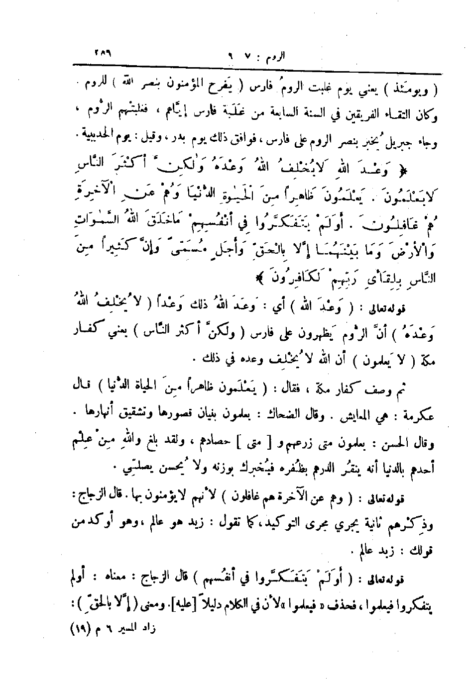 وعد الله لا يخلف الله وعده ولكن أكثر الناس لا يعلمون يعلمون ظاهرا من الحياة الدنيا وهم عن الآخرة هم غافلون أو لم يتفكروا في أنفسهم ما خلق الله السماوات والأرض وما بينهما إلا بالحق وأجل مسمى وإن كثيرا من الناس بلقأي ربهم لكافرون
