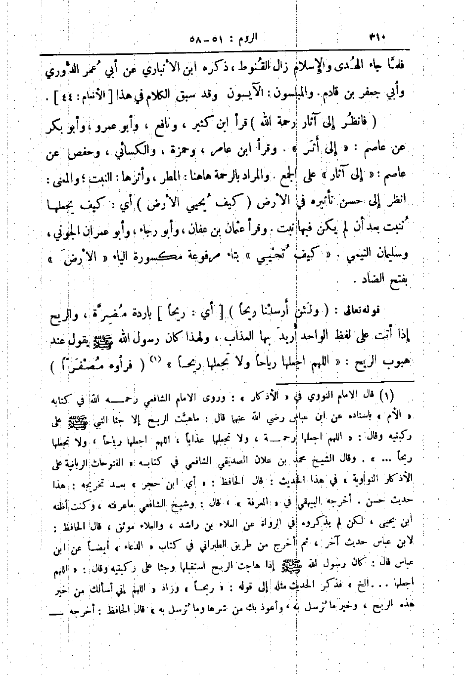 قوله تعالى ولئن أرسلنا ريحا أي ريحا باردة مضرة والريح إذا أتت على لفظ الواحد أريد بها العذاب ولهذا كان رسول الله ص يقول عند هبوب الريح اللهم اجعلها رياحا ولا تجعلها ريحا فرأوه مصفرا