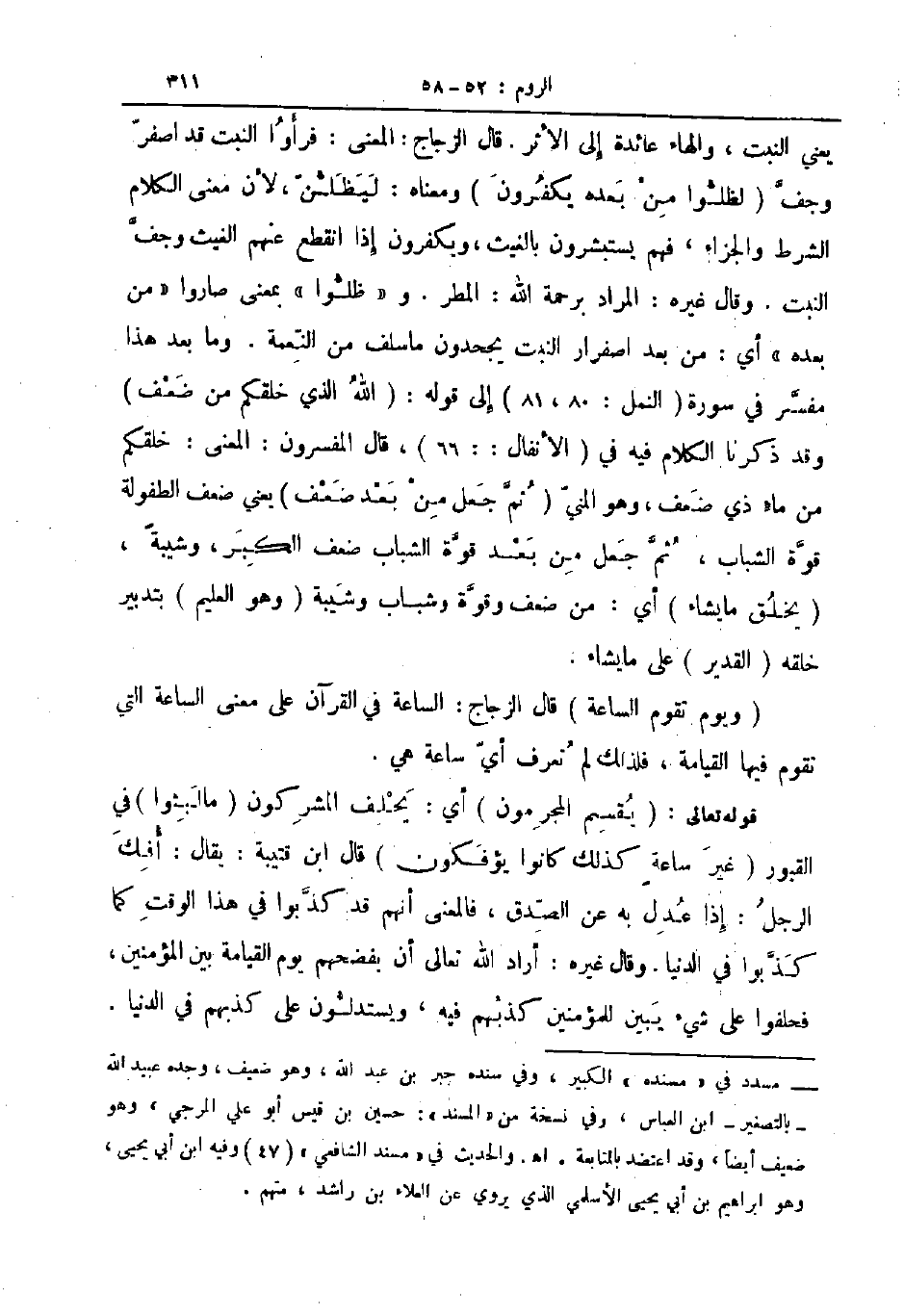 قوله تعالى يقسم المجرمون أي يحلف المشركون ما لبثوا في القبور غير ساعة كذلك كانوا يؤفكون قال ابن قتيبة يقال أفك الرجل إذا عدل به عن الصدق فالمعنى أنهم قد كذبوا في هذا الوقت كما كذبوا في الدنيا وقال غيره أراد الله تعالى أن يفضحهم يوم القيامة بين المؤمنين فحلفوا على شئ يبين للمؤمنين كذبهم فيه ويستدلون على كذبهم في الدنيا
