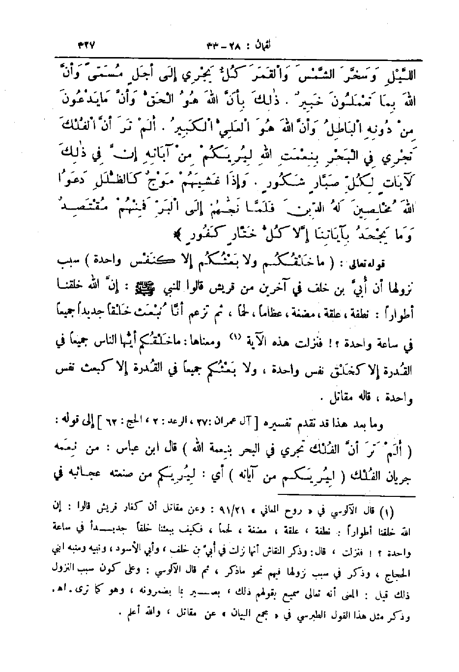 قوله تعالى ما خلقكم ولا بعثكم إلا كنفس واحدة سبب نزولها أن أبي بن خلف في آخرين من قريش قالوا للنبي ص إن الله خلقنا أطوارا نطفة علقة مضغة عظاما لحما ثم تزعم أنا نبعث خلقا جديدا جميعا في ساعة واحدة فنزلت هذه الآية ومعناها ما خلقكم ايها الناس جميعا في القدرة إلا كخلق نفس واحدة ولا بعثكم جميعا في القدرة إلا كبعث نفس واحدة قاله مقاتل