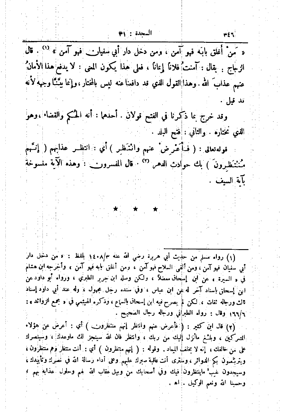 من اغلق بابه فهو آمن ومن دخل دار أبي سفيان فهو آمن قال الزجاج يقال آمنت فلانا إيمانا فعلى هذا يكون المعنى لا يدفع هذا الأمان عنهم عذاب الله وهذا القول الذي قد دافعنا عنه ليس بالمختار وإنما بينا وجهه لانه قد قيل