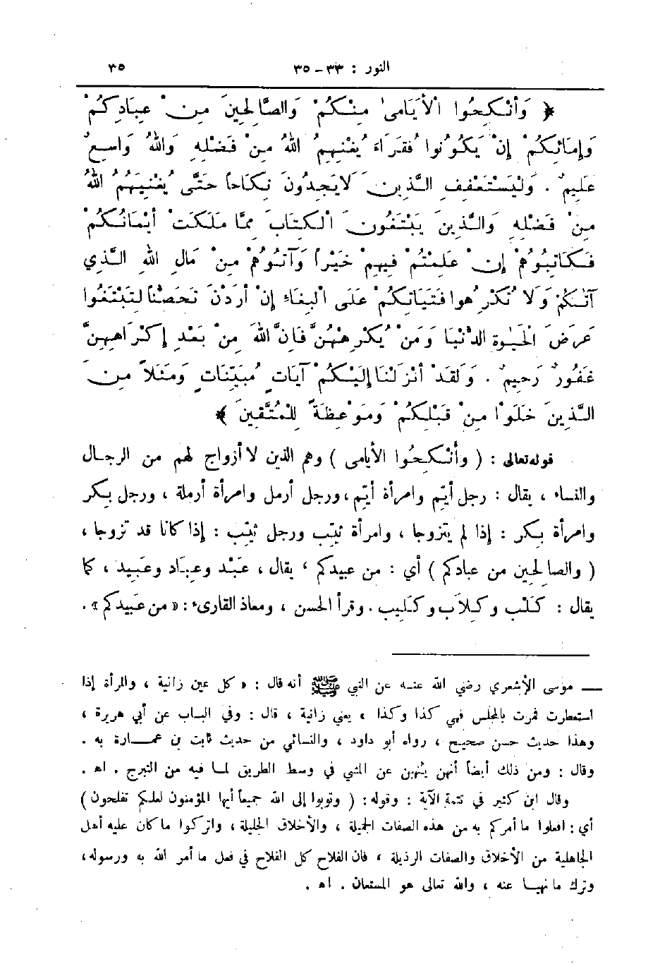 وأنكحوا الأيامي منكم والصالحين من عبادكم وإمائكم إن يكونوا فقراء يغنهم الله من فضله والله واسع عليم وليستعفف الذين لا يجدون نكاحا حتى يغنيهم الله من فضله والذين يبتغون الكتاب مما ملكت أيمانكم فكاتبوهم إن علمتم فيهم خيرا وآتوهم من مال الله الذي آتكم ولا تكرهوا فتيانكم على البغاء إن أردن تحصنوا لتبتغوا عرض الحياة الدنيار ومن يكرههن فان الله من بعد إكراههن غفور رحيم ولقد أنزلنا إليكم آيات مبينات ومثلا من الذين خلوا من قبلكم وموعظة للمتقين