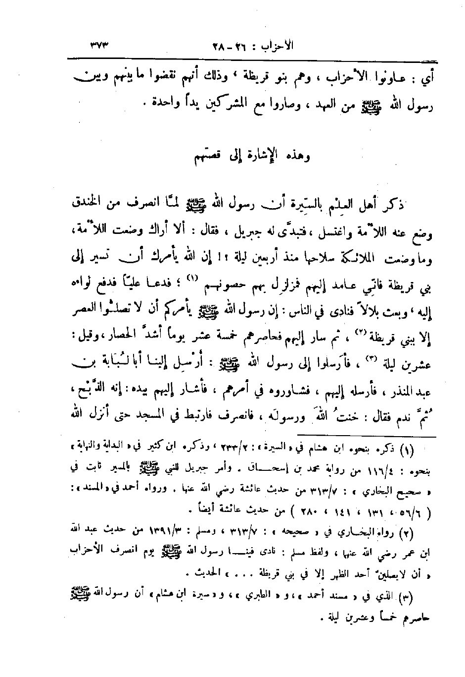 ذكر أهل العلم بالسيرة أن رسول الله صلى الله عليه و سلم لما انصرف من الخندق وضع عنه اللأمة واغتسل فتبدى له جبريل فقال ألا أراك وضعت اللأمة وما وضعت الملائكة سلاحها منذ أربعين ليلة إن الله يأمرك أن تسير إلى بني قريظة فاني عامد إليهم فمزلزل بهم حصونهم فدعا عليا فدفع لواءه إليه وبعث بلالا فنادى في الناس إن رسول الله صلى الله عليه و سلم يأمركم أن لا تصلوا العصر إلا ببني قريظة ثم سار إليهم فحاصرهم خمسة عشر يوما أشد الحصار وقيل عشرين ليلة فأرسلوا إلى رسول الله صلى الله عليه و سلم أرسل إلينا أبا لبابة بن عبد المنذر فأرسله إليهم فشاوروه في أمرهم فأشار إليهم بيده إنه الذبح ثم ندم فقال خنت الله ورسوله فانصرف فارتبط في المسجد حتى أنزل الله