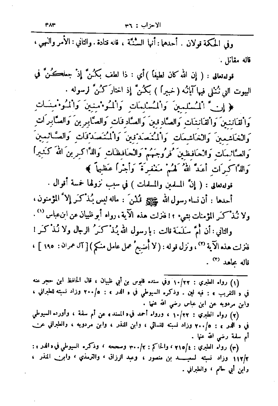 قوله تعالى إن المسلمين والمسلمات في سبب نزولها خمسة أقوال